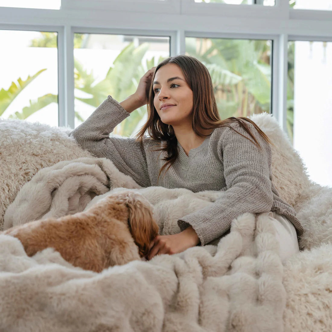 Experience the ultimate comfort with our luxurious lounge chair, upholstered in sumptuous faux fur that boasts long-pile softness for a cloud-like feel. Sink into its very cozy embrace, perfect for relaxing after a long day.
